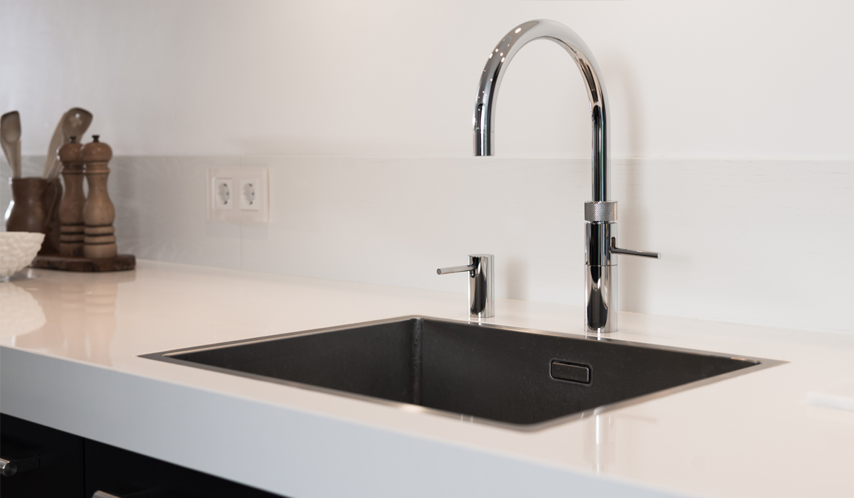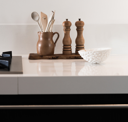Deze keuken bevat alle apparaten die de klant wenst, zoals een diepvries, wijnkoeler, koelkast en een ingebouwd koffiezetapparaat.