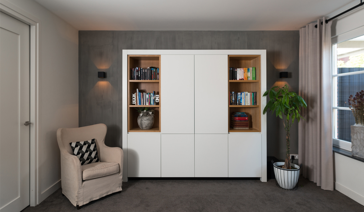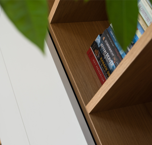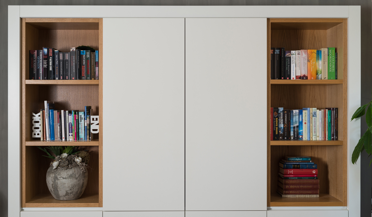 Wanneer de klanten geen tv kijken, kunnen zij de kast via een eenvoudige handeling veranderen in een elegante boekenkast.